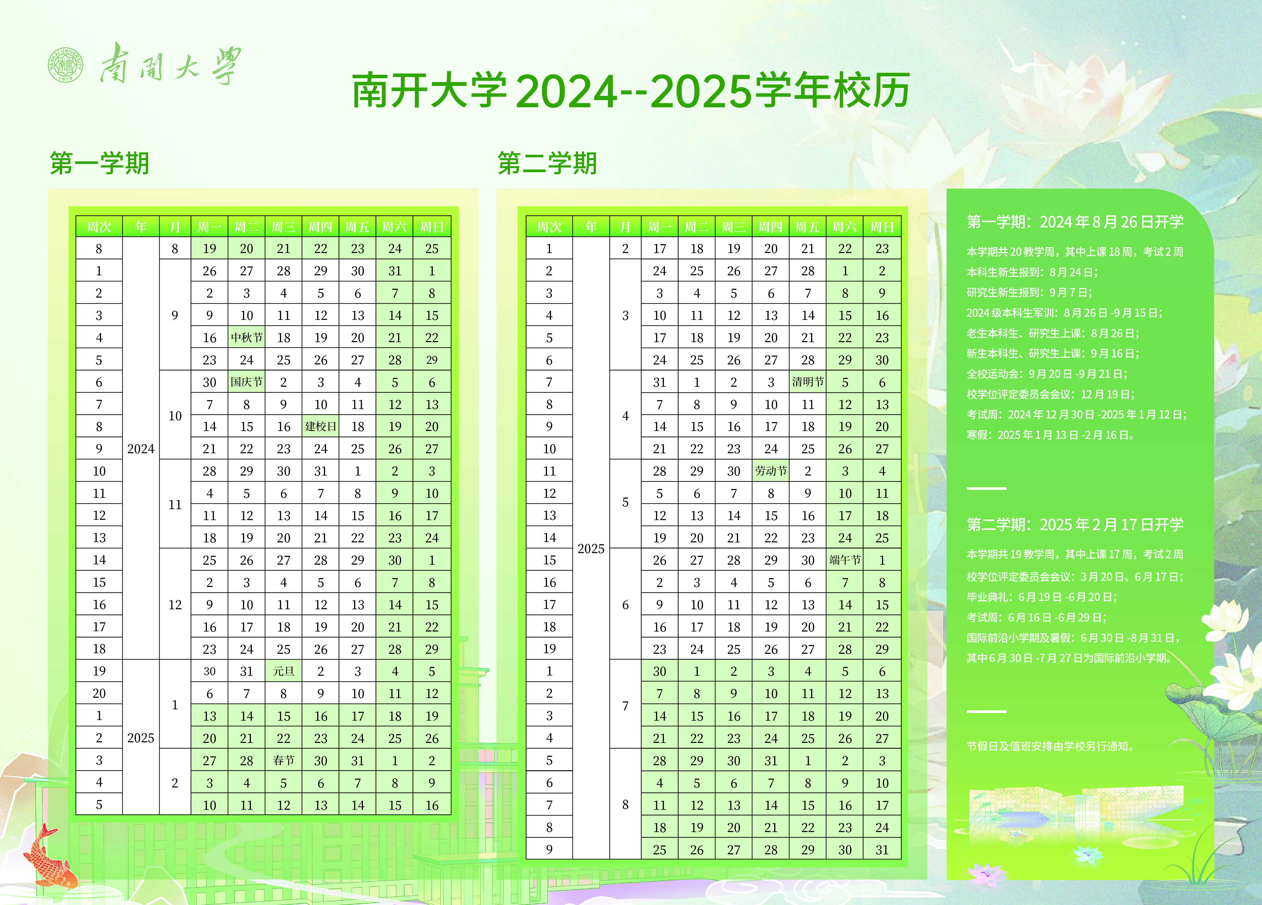 六、请各位同学查收2024-2025学年校历: