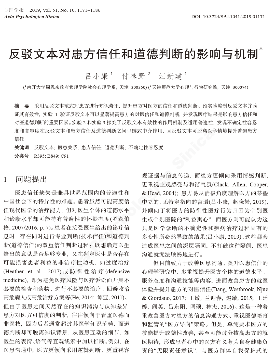 出版社,2019年)一起,集中展示了南开社会心理学团队在医患关系领域的最新研究成果。