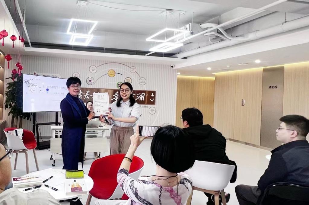 活动中,陈瑜晗代表书房向本期读书会的居民主理人海棠街居民王洋女士颁发纪念证书,感谢她为本期读书会的无私奉献。