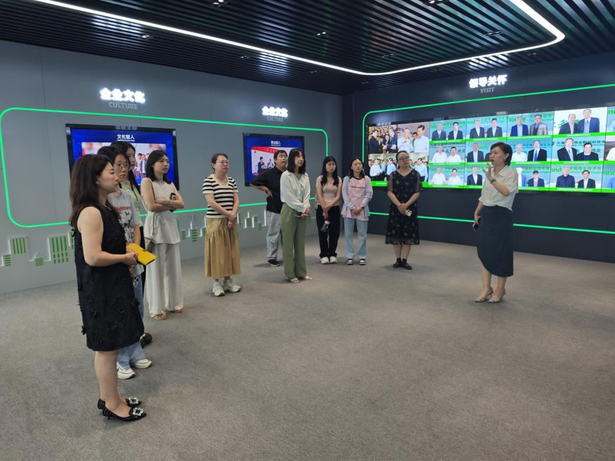 天地伟业技术有限公司人事总监李金竹亲自带领师生参观了公司数字化展厅,详细介绍了公司的发展历程,展示出企业的成长轨迹。通过一幅幅图片和一段段文字,师生们深入了解到了天地伟业技术有限公司在市场竞争中稳步发展、不断壮大的历程,同时也深刻体会到了该公司在我国安防保障与科技创新领域中作出的突出贡献。
