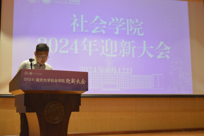 会议伊始,院长张文宏以“认识社会,做守正创新的南开社会人”为题,向全体新生致辞。张文宏首先对所有2024级新生表示了祝贺与欢迎,并鼓励同学们在学习生活中为大公、立大志,做到自信、自强、自立,希望本科生们尽快转换角色、适应大学生活,同时要求研究生同学潜心科研,服务国家和社会发展需求,既要有“板凳甘坐十年冷”的毅力,更要有投身社会实践、关注社会现实的勇气与果敢,珍惜时光、迎难而上,坚守学术道德和学术规范,做费孝通式的研究者。张文宏指出,中国式现代化的宏伟蓝图已经绘就,时代赋予了我们宝贵的机会,希望同学们不要辜负祖国和人民的期盼,不要辜负家长和学校的期望,努力学习、知行合一,更好地成为有理想、敢担当、能吃苦、肯奋斗的新时代好青年。