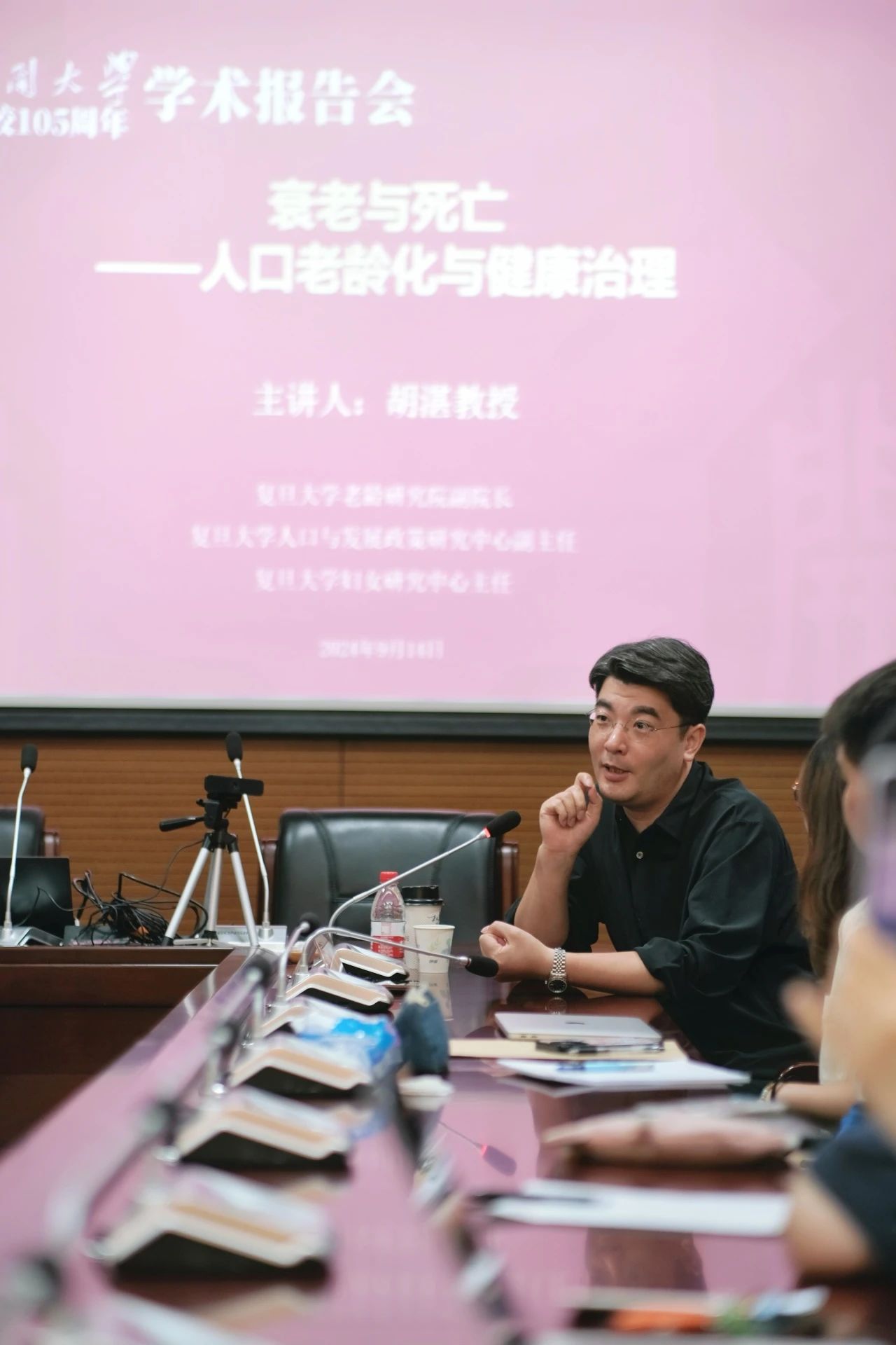 建校105周年学术报告会”系列讲座。本次讲座特邀复旦大学老龄研究院副院长、人口与发展政策研究中心副主任、妇女研究中心主任胡湛教授,开展“衰老与死亡——人口老龄化与健康治理”的学术报告。讲座由动漫画