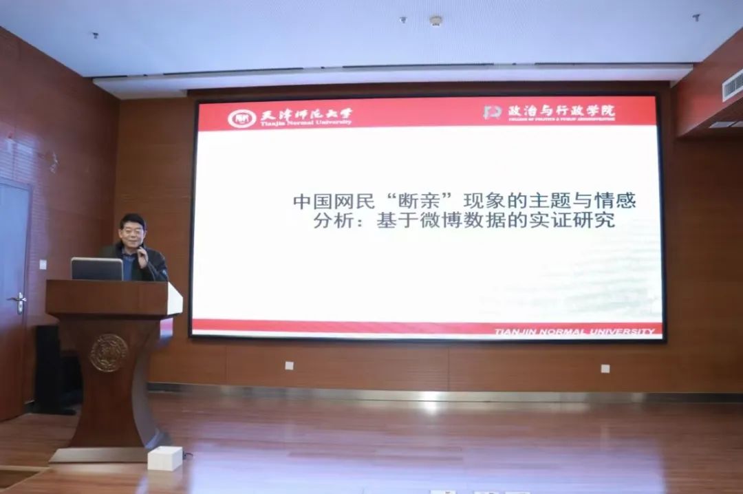 贺寨平教授以“‘断亲’现象的主题与情感分析:基于微博数据的实证研究”为主题作报告。研究基于微博数据,通过网络爬虫技术采集“断亲”的相关评论,应用LDA主题模型分析讨论焦点,并通过情感分析识别网民对这一议题的情感倾向。同时,结合性别与年龄等变量,探讨不同群体在关注点和态度上的差异,为该领域提供更加丰富的数据支持和多维度的分析视角。