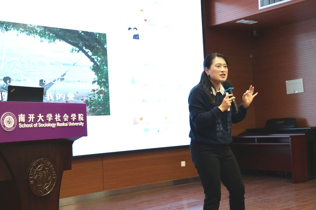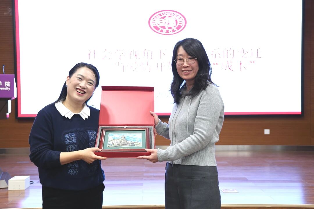 宋媛书记向沈奕斐老师赠送南开文创纪念品。讲座由动漫画