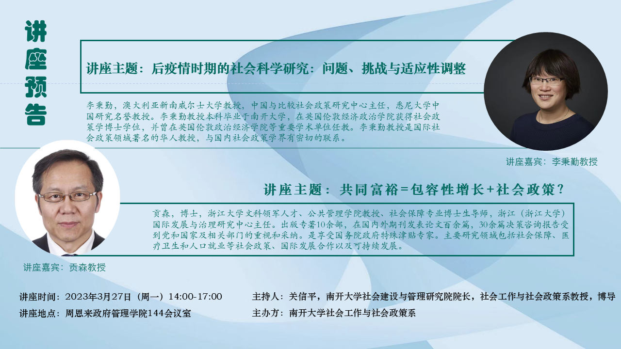 社会建设与管理研究院院长,社会工作与社会政策系教授,博导