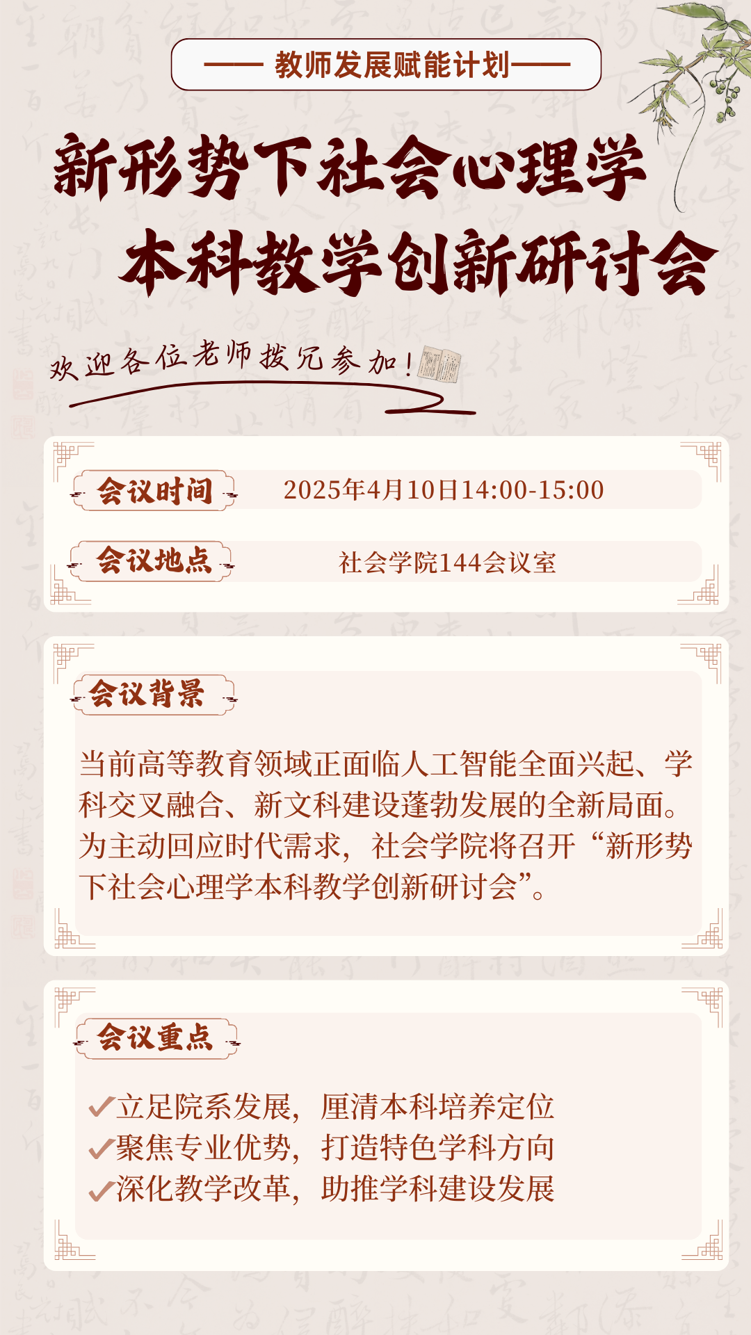 当前高等教育领域正面临人工智能全面兴起、学科交叉融合、新文科建设蓬勃发展的全新局面。为主动回应时代需求,动漫画 将召开“新形势下社会心理学本科教学创新研讨会”