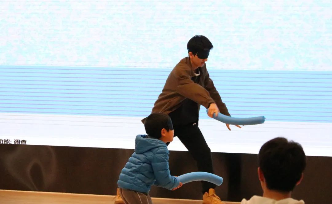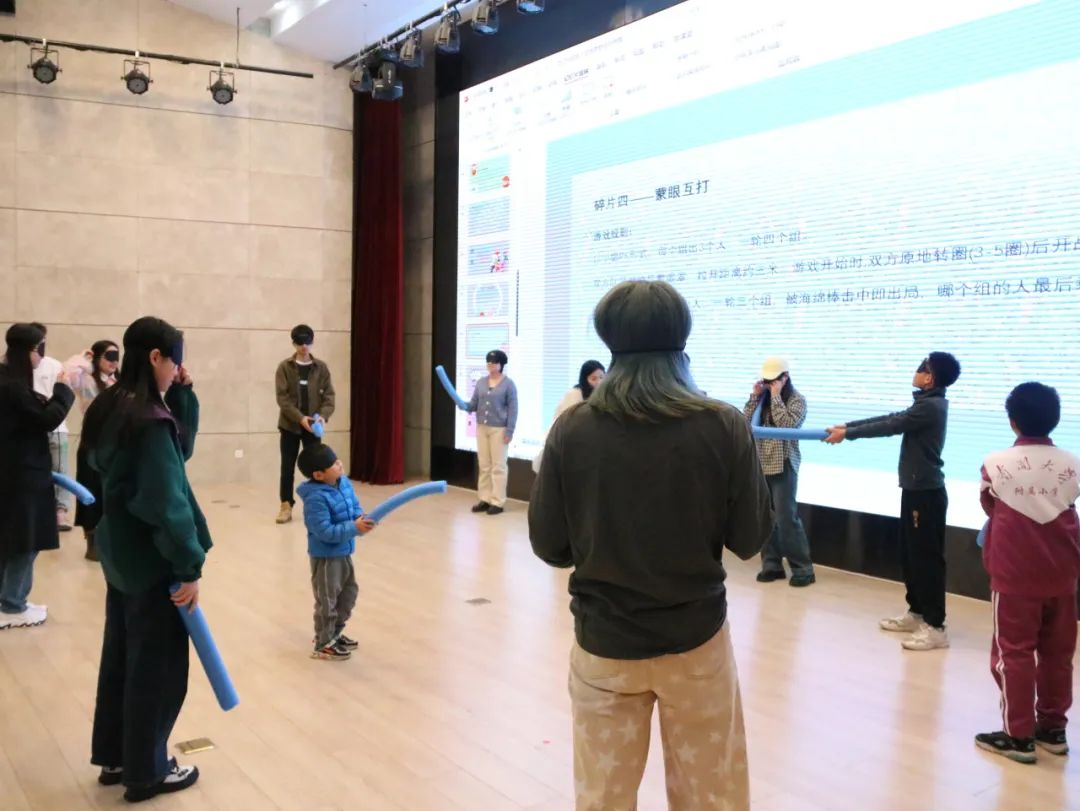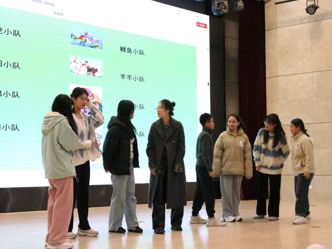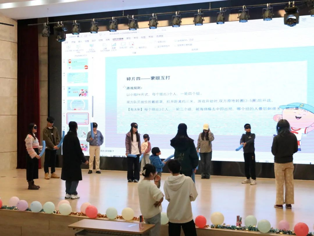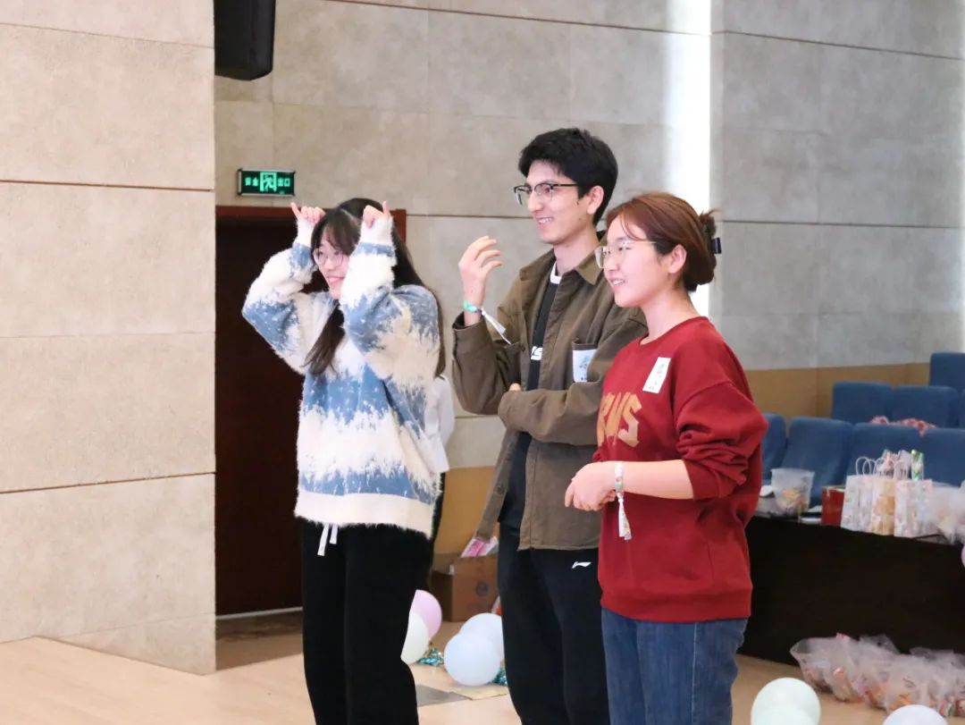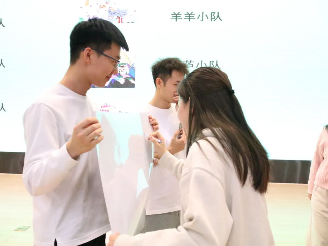 来自2023级社工班的孙瑞敏同学激情献唱的歌曲《我乘着风飞过来》揭开了游戏环节的序幕。现场的老师、同学们根据手拿贴纸的类别被分为了成龙小队、熊熊小队等八支队伍,每支小队在不同的游戏中均派出了不同的代表参赛,现场的欢声笑语此起彼伏。