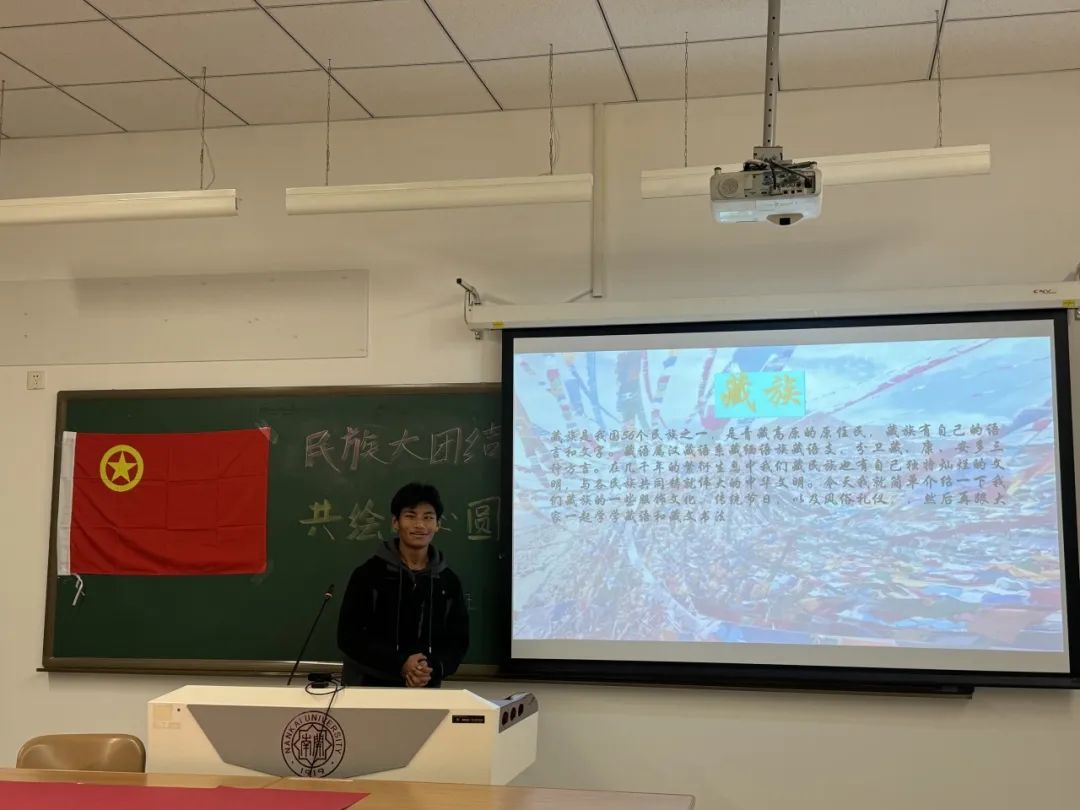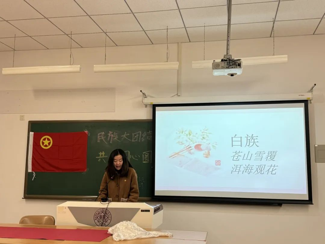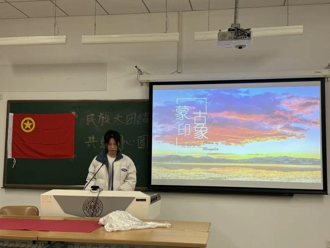 四个来自不同民族的同学分别介绍了藏族、回族、白族和蒙古族的文化,为我们展现了中华民族文化的多样性,带领我们深入走进了灿若舒锦的民族世界。